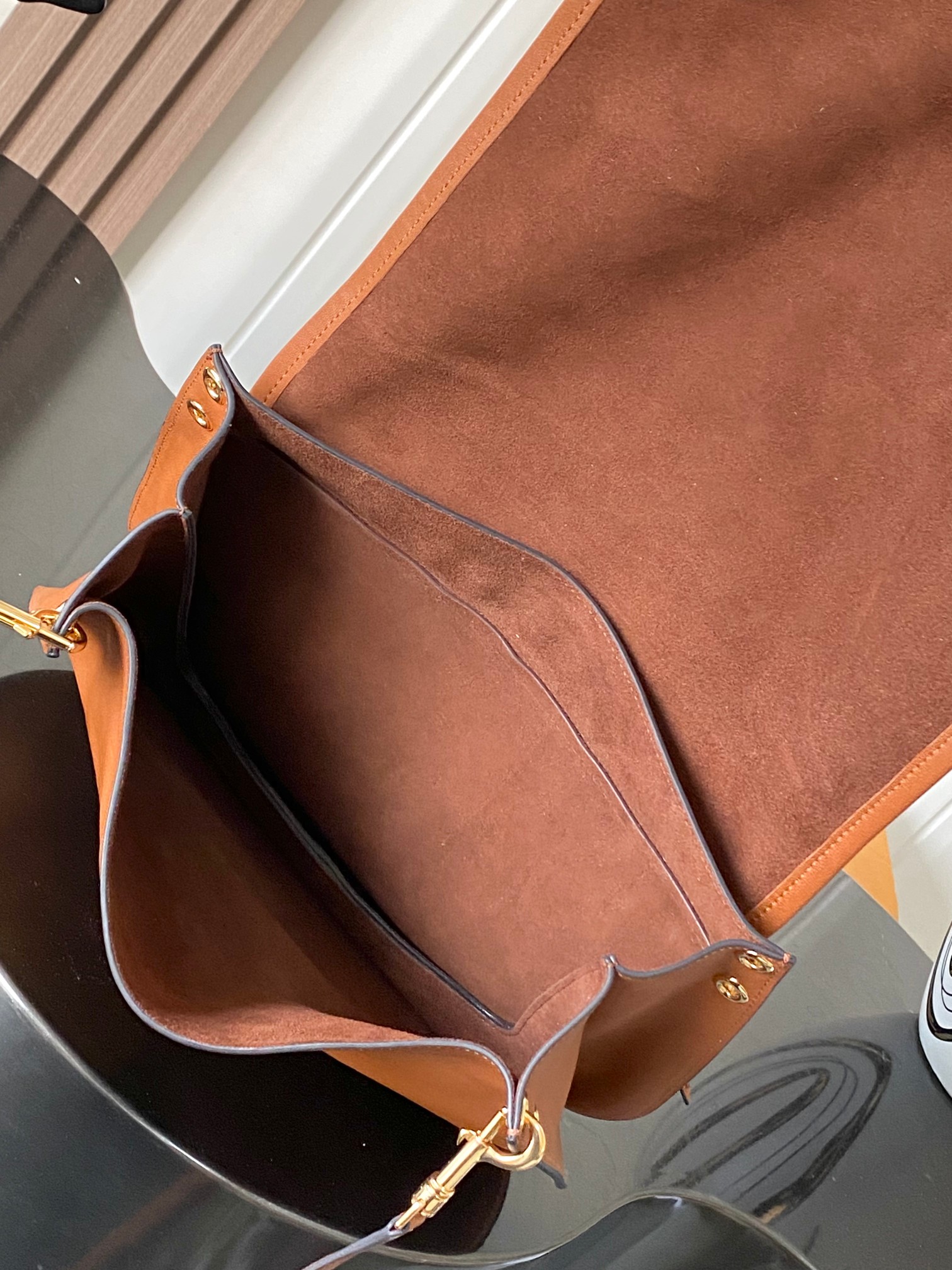 Crafted from glossy lambskin that’s as soft as it is light—carry ease, styled with edge.