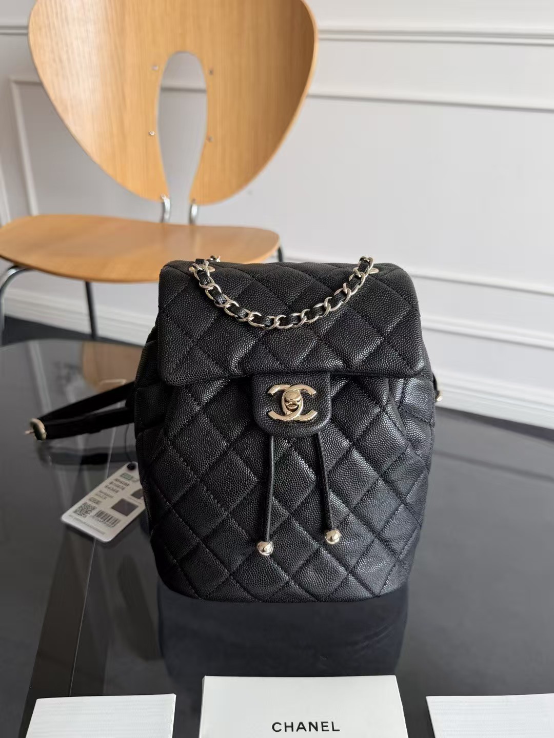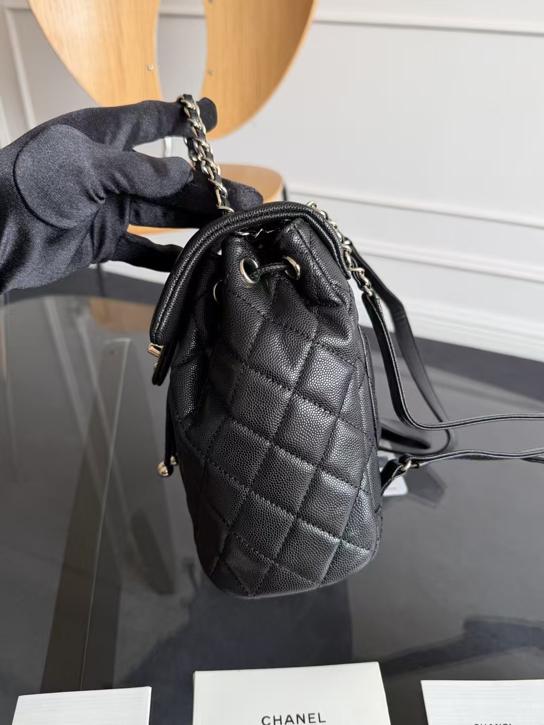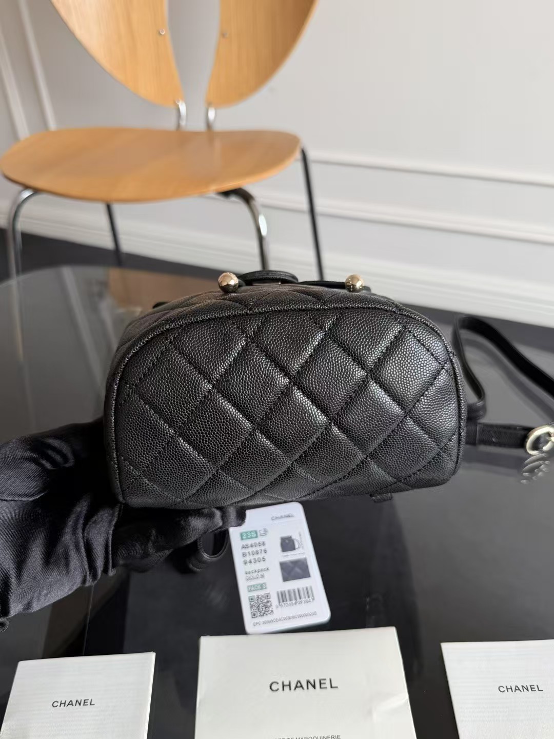 Chanel 23S Small Urban Spirit Backpack Black Quilted Caviar Light Gold Hardware