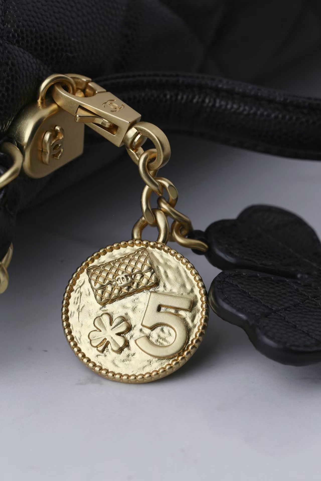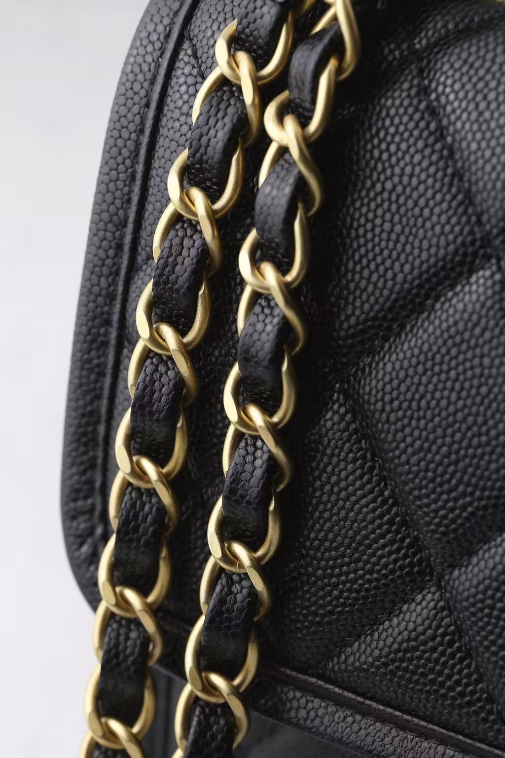 Crafted from Chanel’s signature caviar leather in timeless black, the Chanel 25B Top Handle Flap Bag perfectly balances elegance and practicality. This structured silhouette features diamond quilting, a single top handle, and the iconic leather-woven chain strap for versatile wear. Finished with gold-tone hardware and the signature CC turn-lock closure, it embodies the maison’s refined craftsmanship. The spacious interior and external slip pocket offer functionality for daily use, making it a sophisticated choice for both day and evening. Complete with a statement charm accent, this piece is a classic addition to any modern Chanel collection.