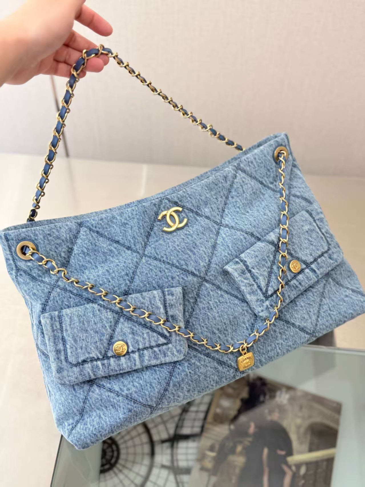 Chanel CC Denim Shopping Tote Bag