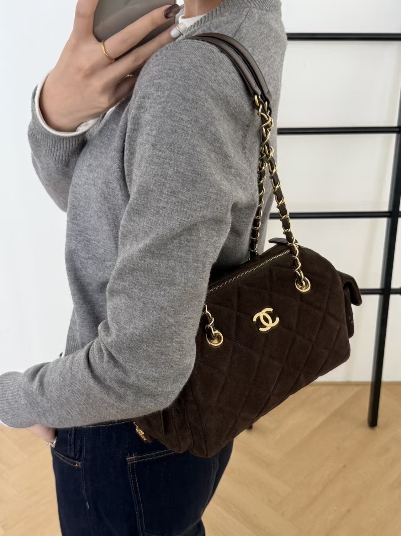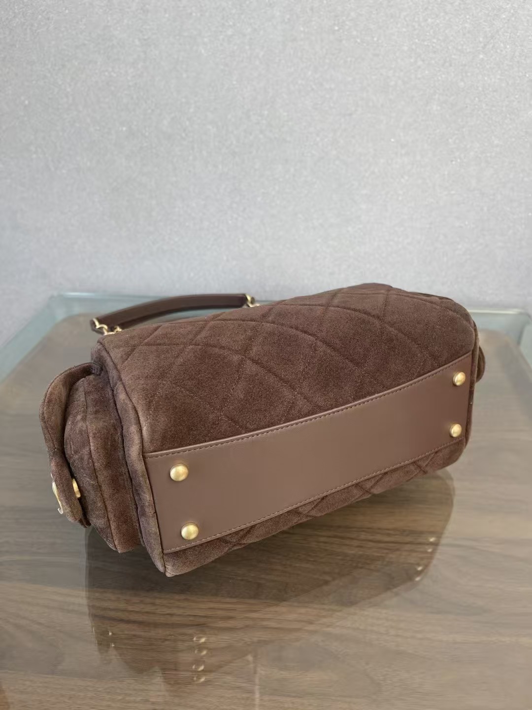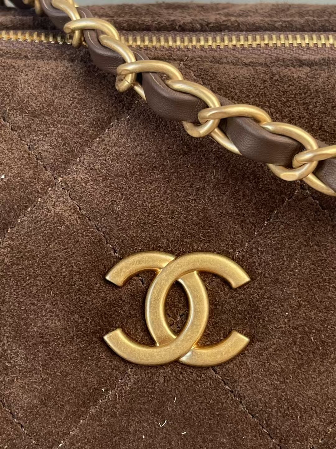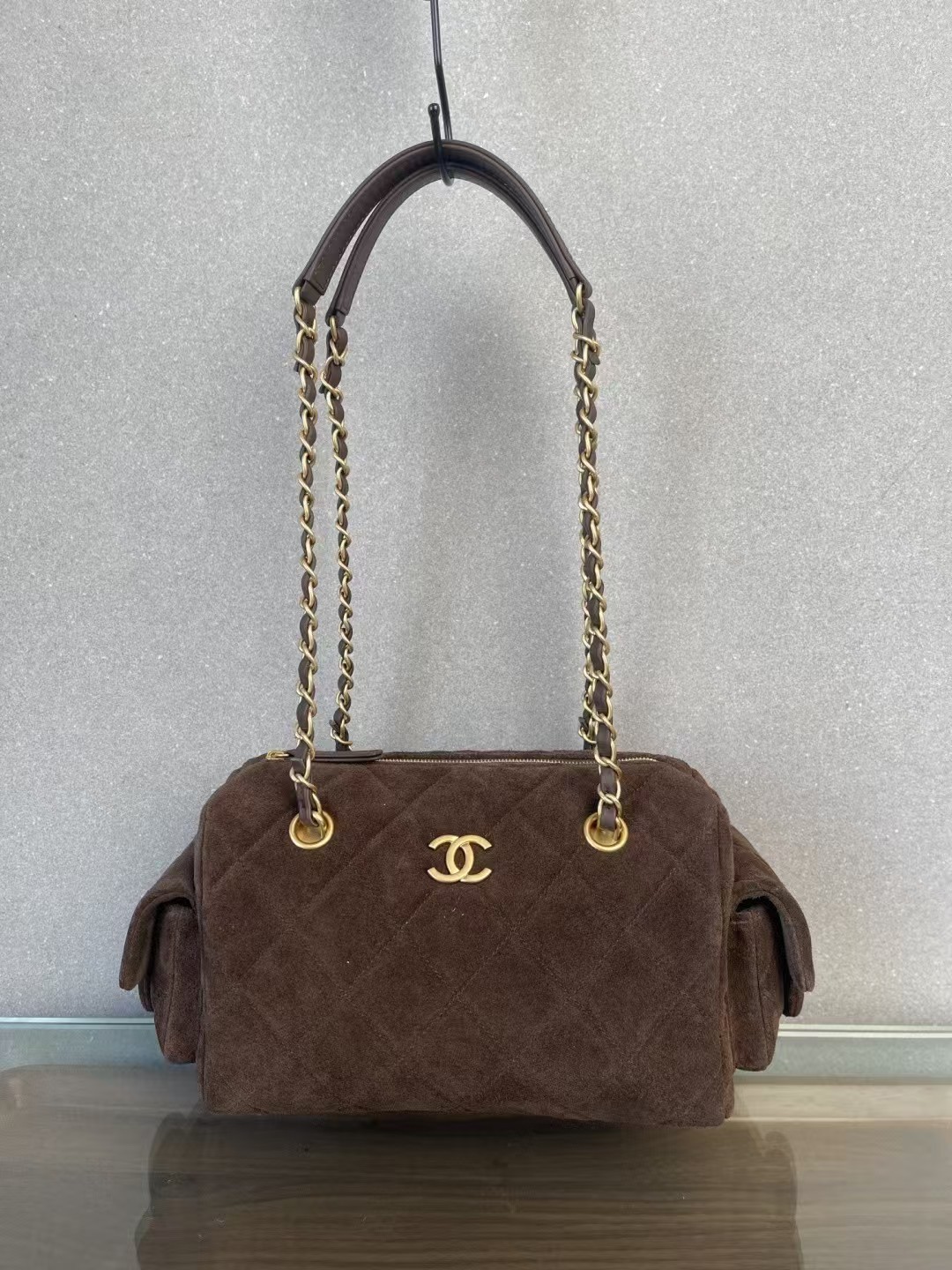 Chanel Small Bowling Bag Dark Brown Suede Antique Gold Hardware