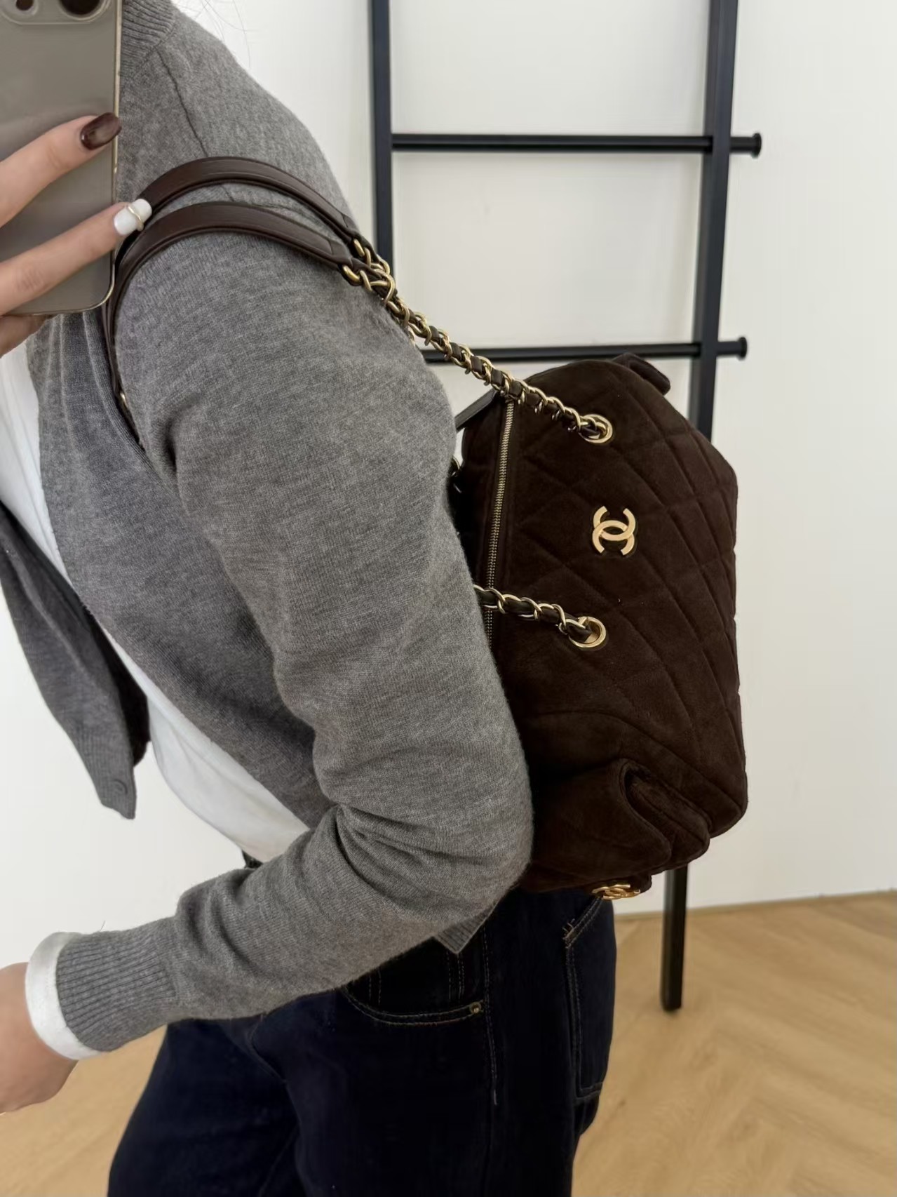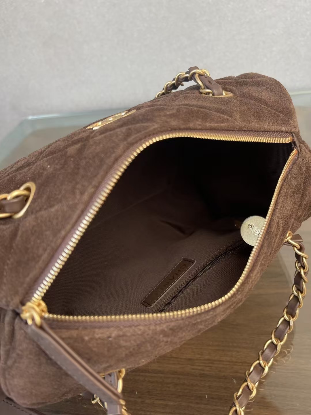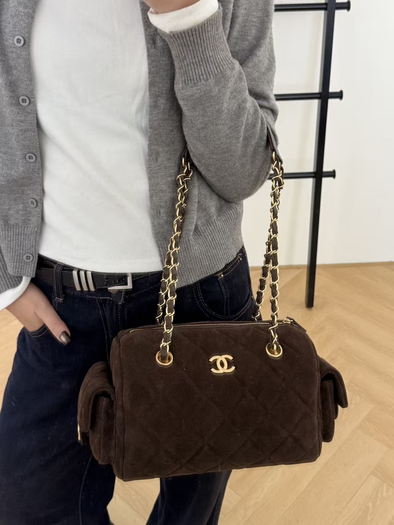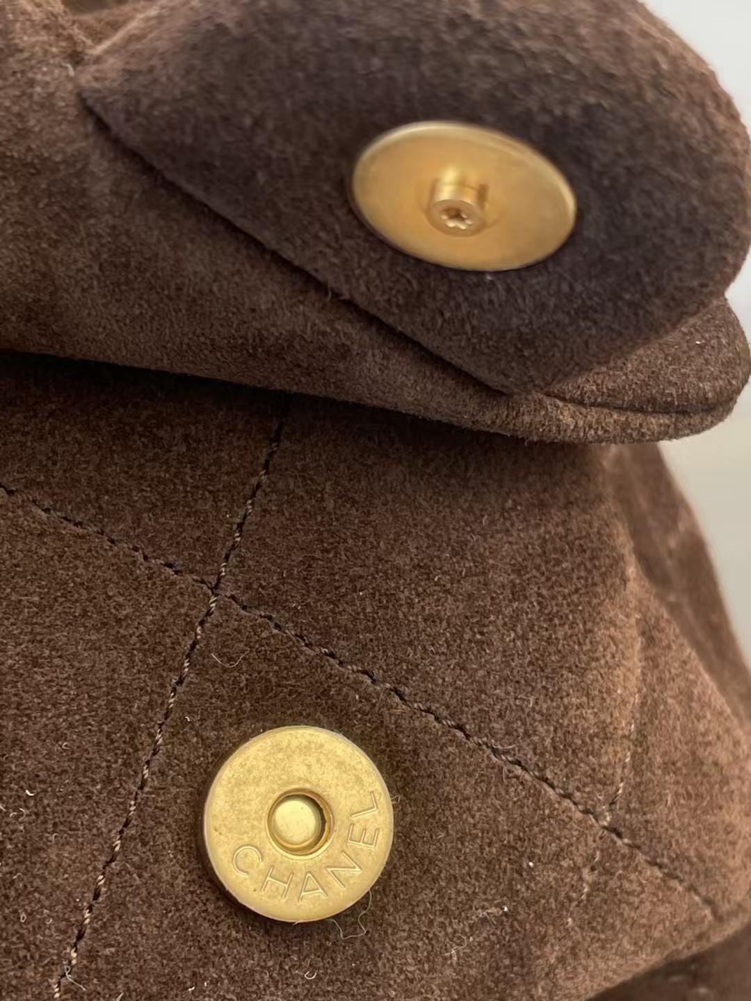 Chanel Small Bowling Bag Dark Brown Suede Antique Gold Hardware