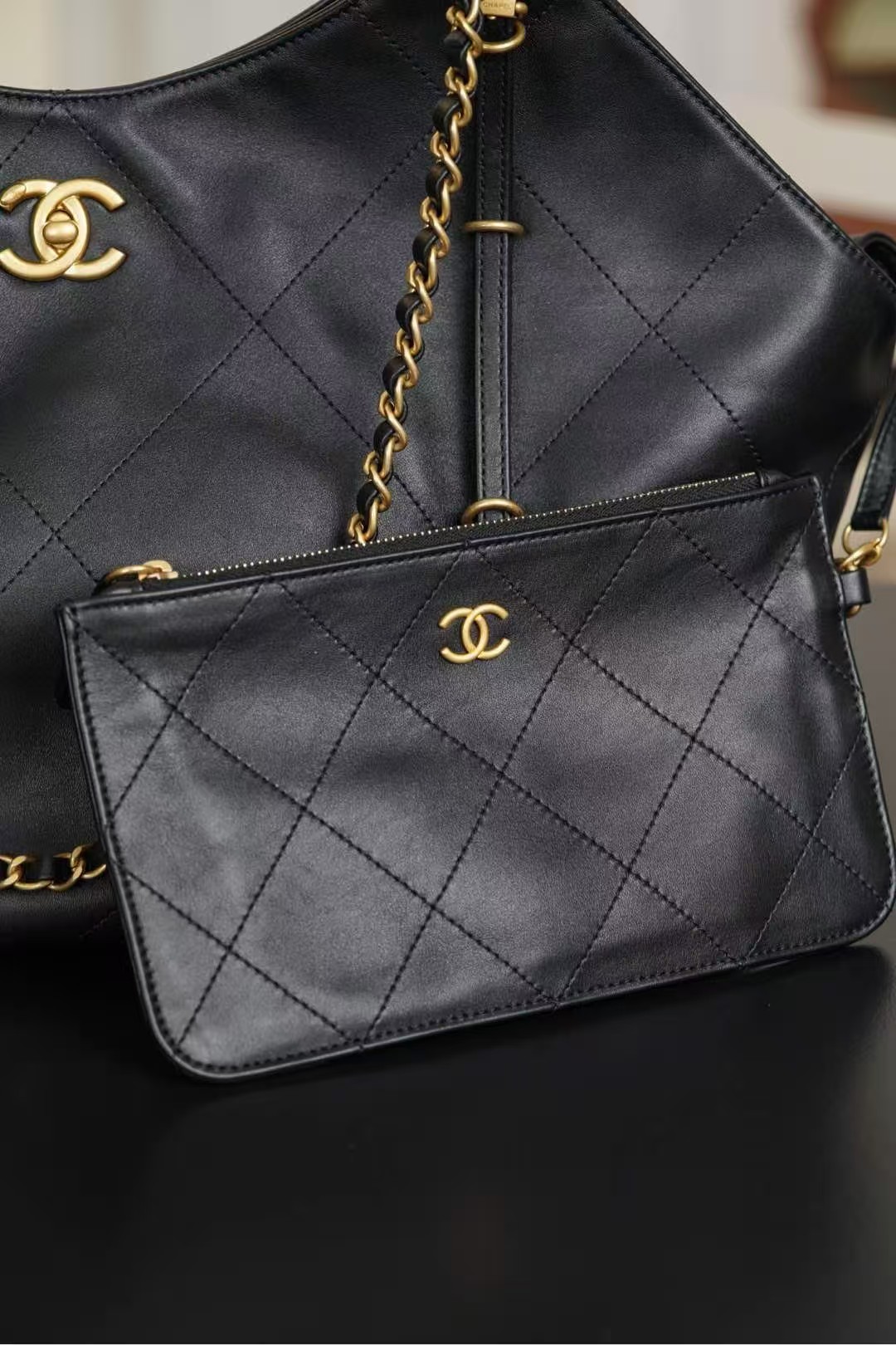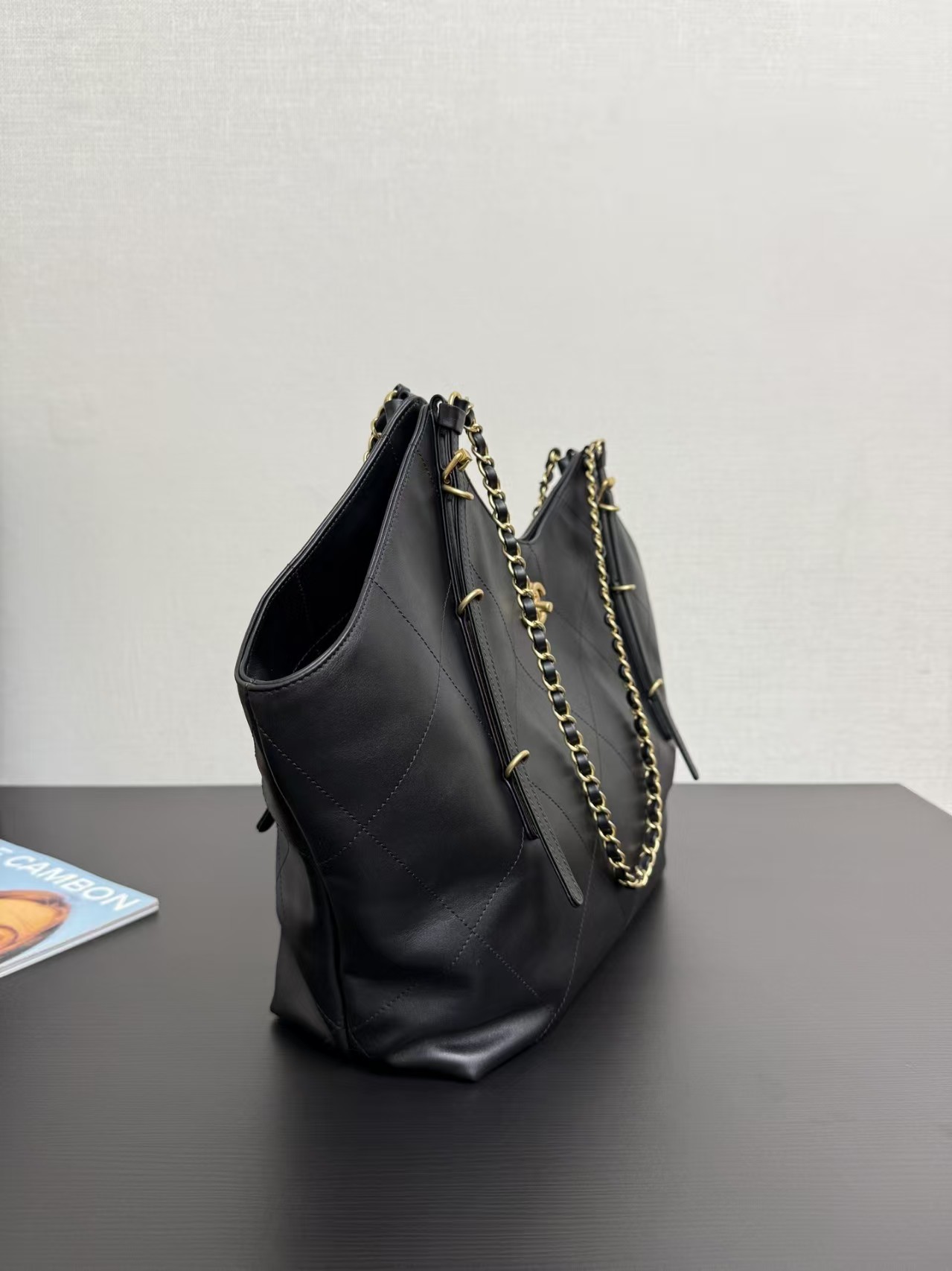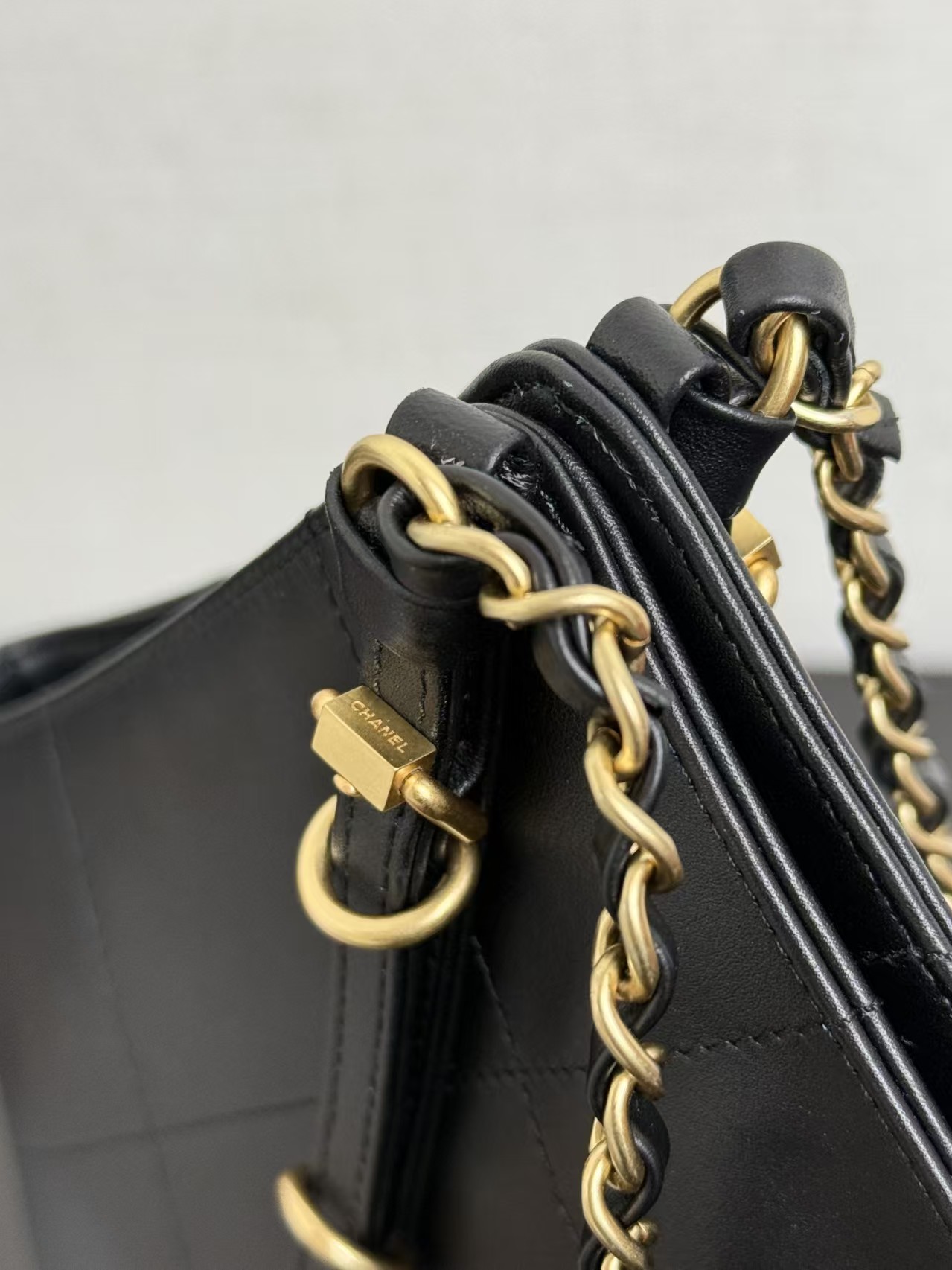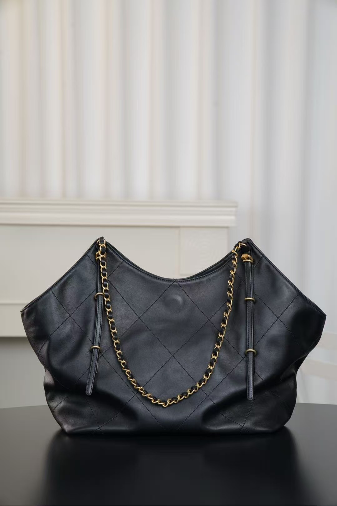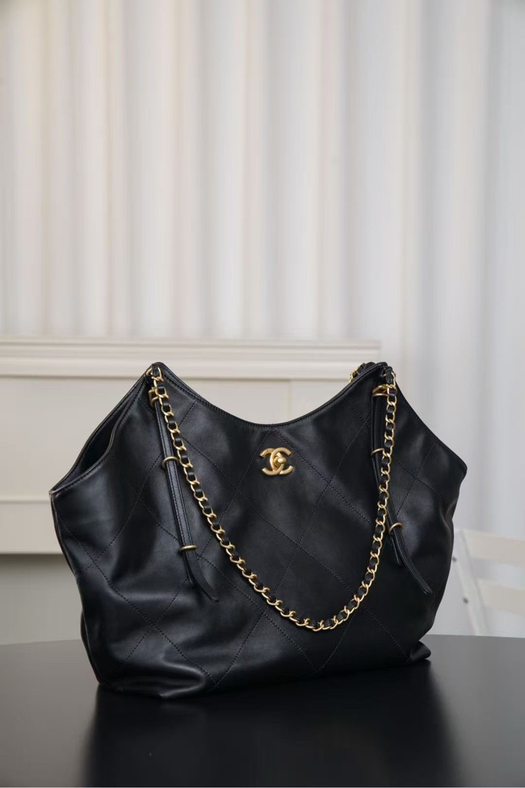 Chanel Small Coco Shopping Bag Black Calfskin Antique Gold Hardware
