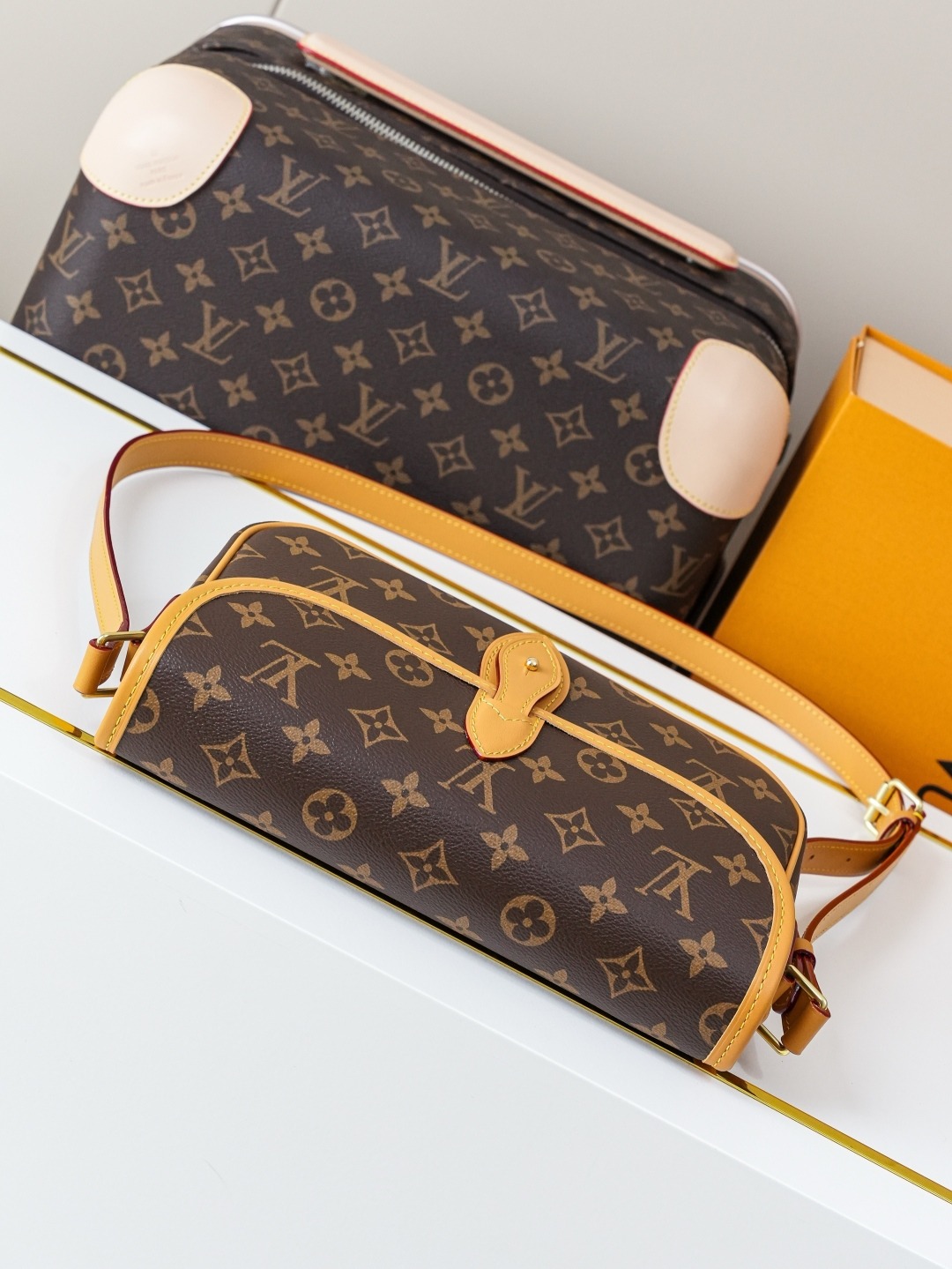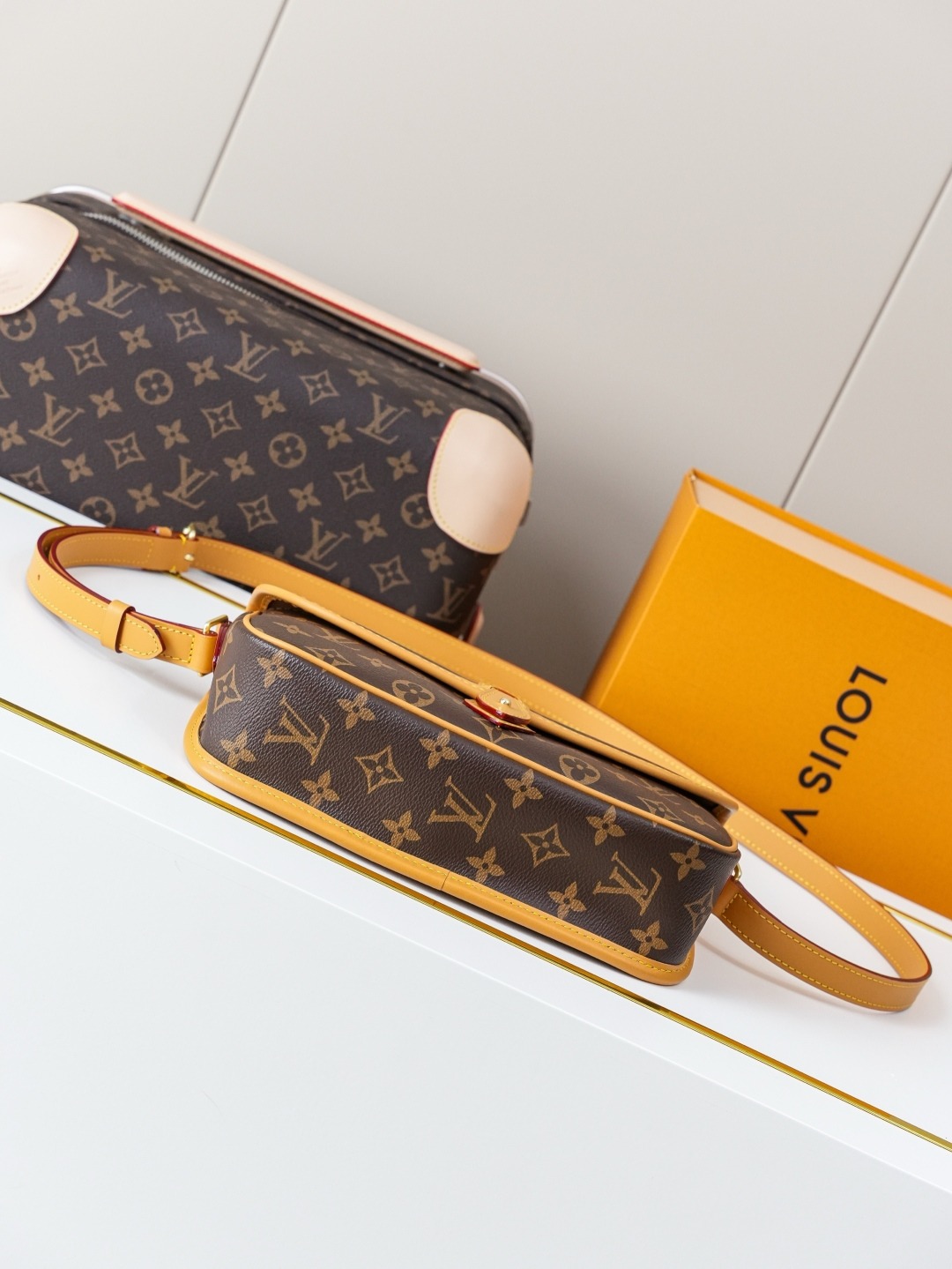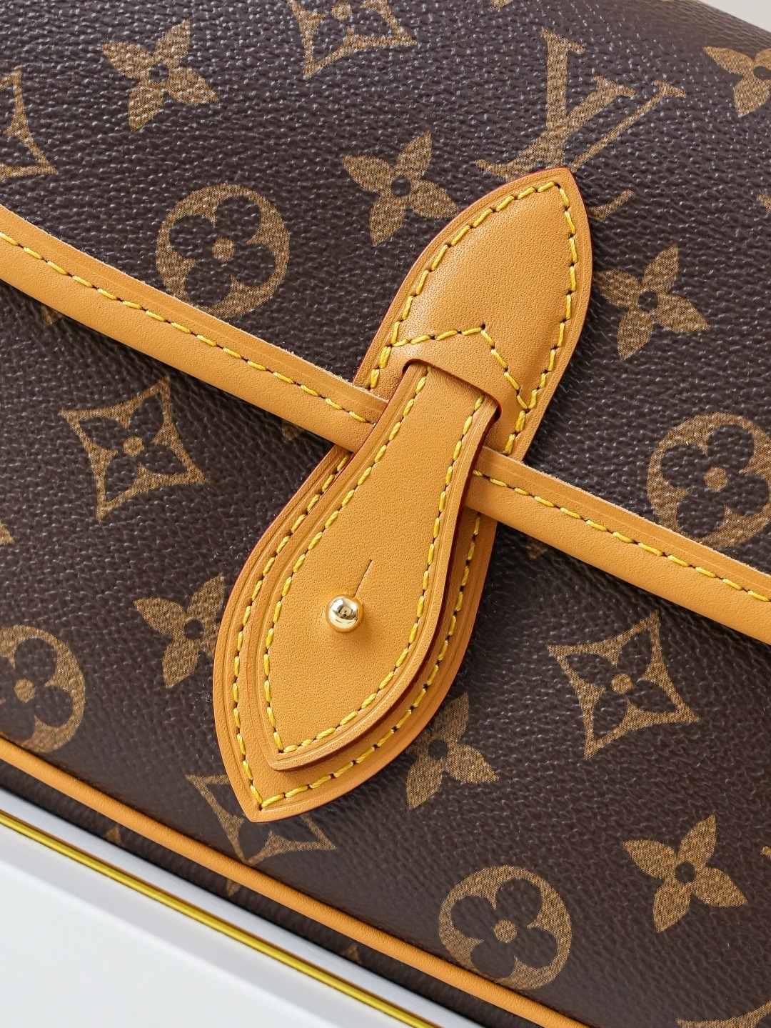 This DIANE handbag comes with one detachable leather shoulder strap (for underarm carrying) and one embroidered shoulder strap (for crossbody carrying). It has enough capacity for everyday use, easily fitting even a large phone. The monogrammed, yellow leather baguette-style messenger bag features a decorative leather buckle that is actually magnetic, making it fairly convenient to open and close. There are internal compartments for easy organization, and a zippered section for valuables. Dimensions: 25.0 × 9.0 × 15.0 cm