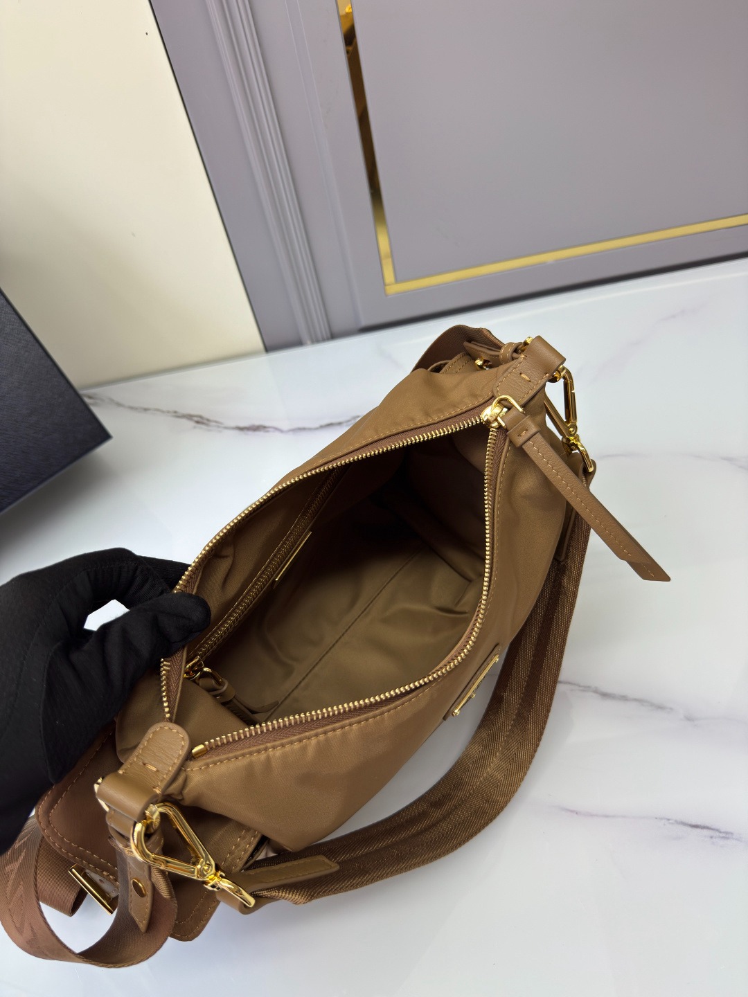 This exploration bag is crafted from imported nylon and calfskin, featuring a supple silhouette and multiple pockets. The lightweight and practical Re-Nylon emphasizes the design's versatility, while leather details and signature embellishments reflect a handcrafted heritage. It comes with two detachable, adjustable woven logo shoulder straps. It boasts a large capacity and a very stylish look. Another timeless and popular piece. A must-have! 🎉🎉