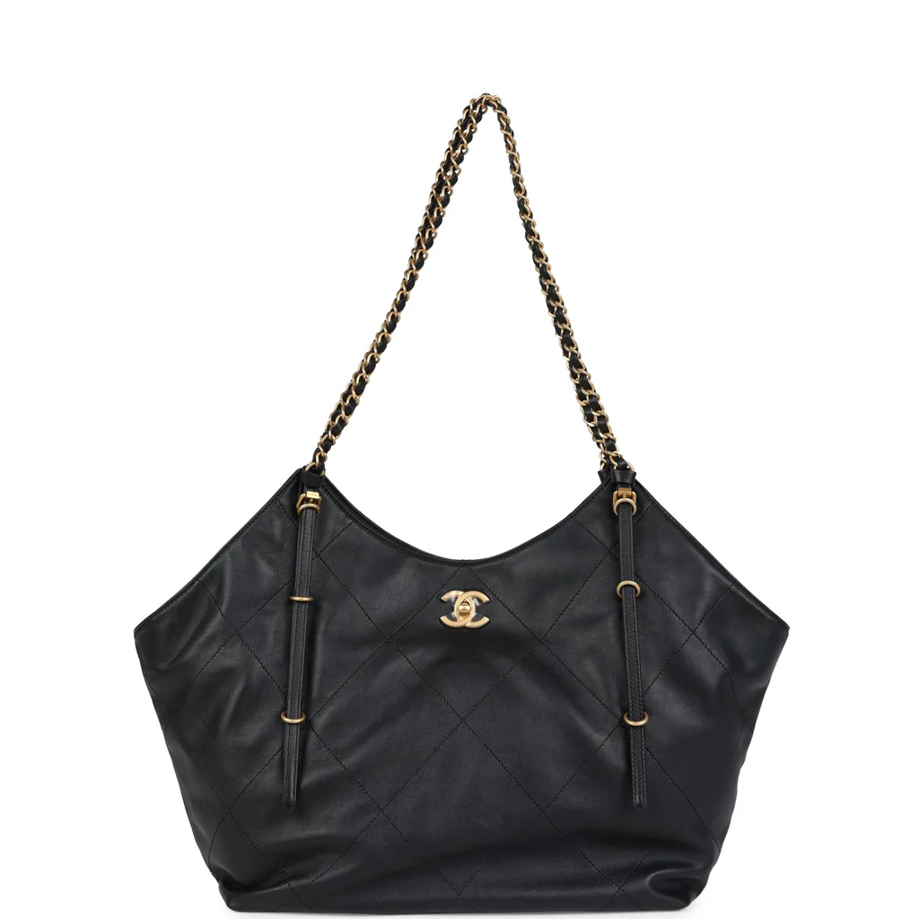 Chanel Small Coco Shopping Bag Black Calfskin Antique Gold Hardware