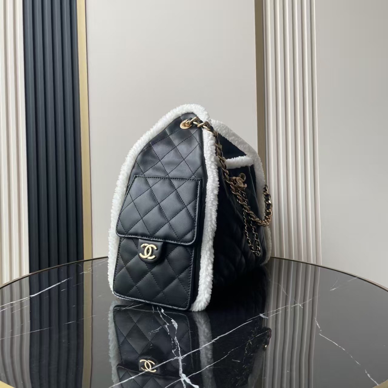 Chanel Hobo Bag — Black Quilted Leather with Shearling Trim (Small)