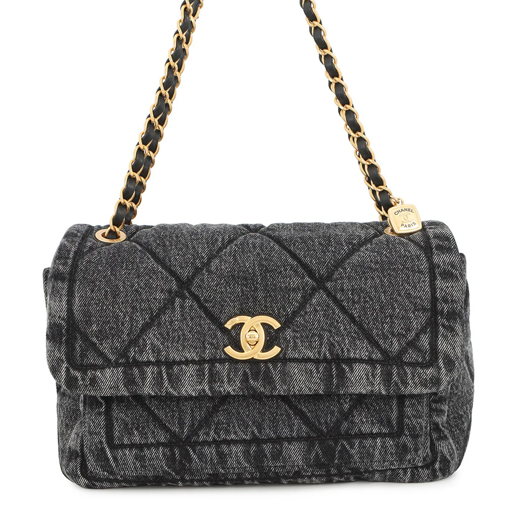 Chanel 25k Black Dark Denim Flap Bag Aged Antique Gold hardware